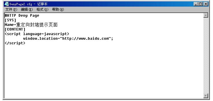 2. 打開(kāi)config/DenyPage文件夾,用記事本編輯一個(gè)“封堵提示頁(yè)面”的配置文件。