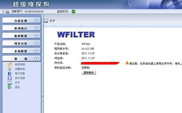 如果您選擇通過(guò)Internet來(lái)激活您的產(chǎn)品,當(dāng)您提交您在購(gòu)買時(shí)獲得的注冊(cè)碼時(shí),激活平臺(tái)將檢查您的Internet連接,然后連接到一個(gè)安全的服務(wù)器上,傳輸您的注冊(cè)碼給WFilter,WFilter將返回您的注冊(cè)結(jié)果,即而完成激活。