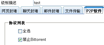 輸入級別名稱以及級別描述 (如test),選中P2P軟件選項卡。