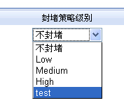 在封堵策略級別列中,點擊下拉框,選擇新增的策略級別test。
