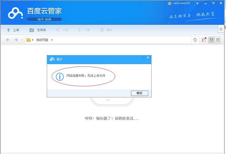 可以看到百度云網(wǎng)盤(pán)無(wú)法上傳或下載文件。