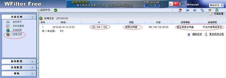 本例中,我們將演示如何用WFilter Free 禁止網(wǎng)盤(pán)(以百度云網(wǎng)盤(pán)為例)。