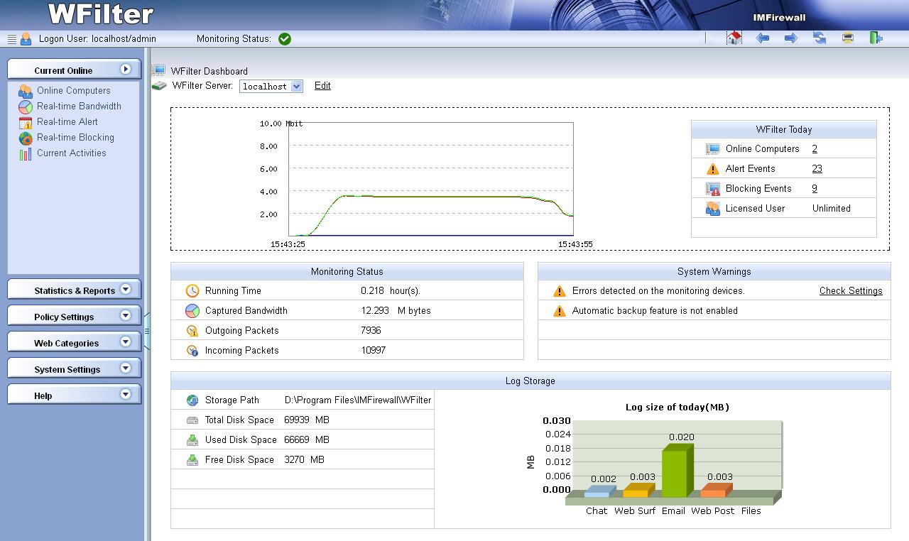 Home /  WFilter Screenshots - Bandwidth monitoring