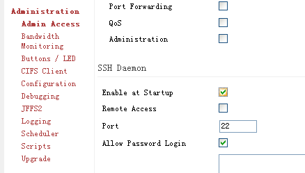 在"Administration" - "Admin Access"中啟用"SSH Daemon"。