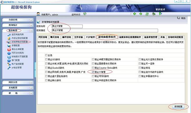 通過超級嗅探狗上網(wǎng)行為管理軟件禁止炒股軟件