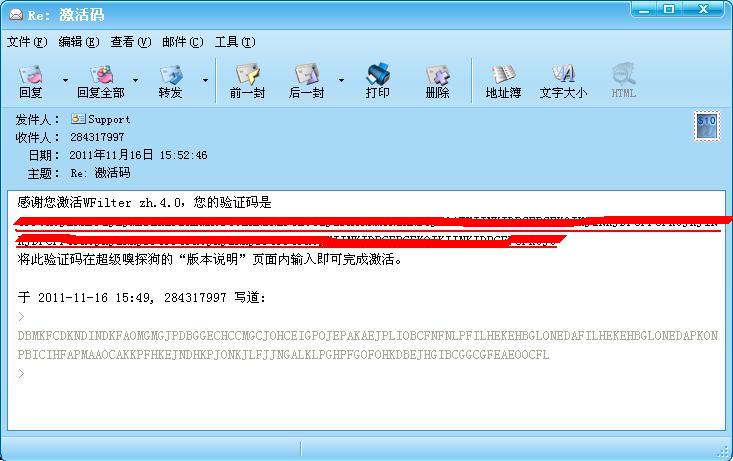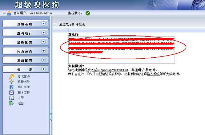 如果您選擇通過(guò)郵件的方式來(lái)激活您的產(chǎn)品,在對(duì)話框中輸入您購(gòu)買時(shí)獲得的注冊(cè)碼,選擇郵件激活,點(diǎn)擊確定,頁(yè)面將返回一串激活碼,將激活碼的內(nèi)容通過(guò)郵件的方式發(fā)送到指定的郵箱中,公司將在兩個(gè)工作日內(nèi)將驗(yàn)證碼發(fā)給您,把收到的驗(yàn)證碼輸入到系統(tǒng),即可完成激活。
