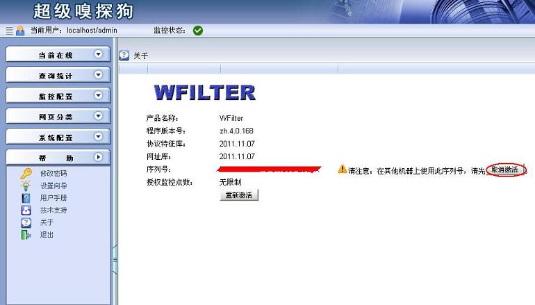 如果您選擇通過(guò)Internet來(lái)激活您的產(chǎn)品,當(dāng)您提交您在購(gòu)買時(shí)獲得的注冊(cè)碼時(shí),激活平臺(tái)將檢查您的Internet連接,然后連接到一個(gè)安全的服務(wù)器上,傳輸您的注冊(cè)碼給WFilter,WFilter將返回您的注冊(cè)結(jié)果,即而完成激活。