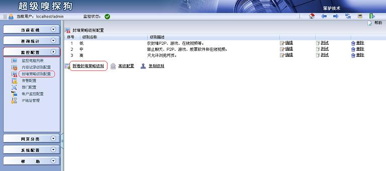 進(jìn)入監(jiān)控配置 -> 封堵策略級別配置 -> 新增封堵策略級別,創(chuàng)建一個(gè)新的封堵策略。4.配置封堵策略