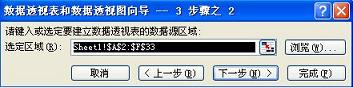 步驟2:單擊“下一步”,進(jìn)入“選定要建立數(shù)據(jù)透視表的數(shù)據(jù)源區(qū)域”界面(選擇區(qū)域從第二行到最后一行)。具體如下圖所示: