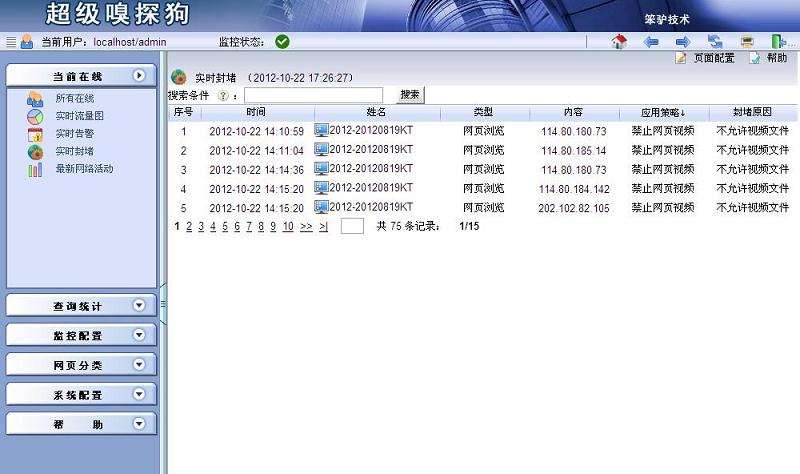 同時,您可以在超級嗅探狗的當前在線->實時封堵中,看到封堵信息。具體如下圖所示: