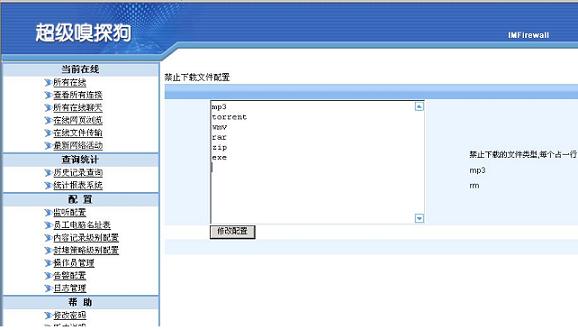 下載文件不但會(huì)占用到大量帶寬,而且會(huì)帶來(lái)病毒和間諜軟件,從而影響到局域網(wǎng)的安全。所以,限制網(wǎng)內(nèi)電腦下載文件不但可以保障帶寬資源,并且在一定程度上減少染病毒的危險(xiǎn)。 一般的路由器或者網(wǎng)關(guān)都不能針對(duì)文件格式或者網(wǎng)站進(jìn)行封堵,而使用超級(jí)嗅探狗可以有效的對(duì)文件下載進(jìn)行控制,并且可以禁止bt、電騾等P2P下載,還根據(jù)文件類型限制各類文件的下載,并且可以禁止下載站的訪問(wèn)等等。