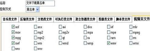 超級(jí)嗅探狗3.2版對(duì)文件下載的管理更加人性化,3.2版中把常見文件類型分為9大類,用戶只需要選擇需要禁止的分類即可,而無(wú)需知道具體的擴(kuò)展名,如下圖。