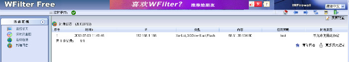 2、進入到WFilter Free 當前在線 -- 封堵日志可以查看到封堵記錄