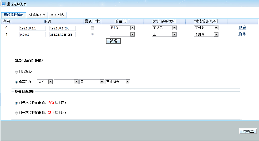 8. 優(yōu)化了對(duì)新增電腦、網(wǎng)段默認(rèn)策略的配置