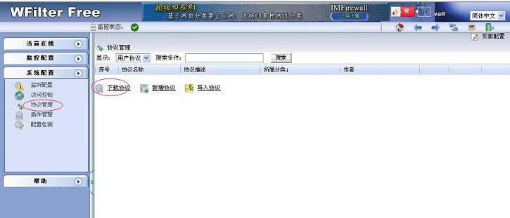 點(diǎn)擊“系統(tǒng)配置”下的“協(xié)議管理”,點(diǎn)擊“下載協(xié)議”。
