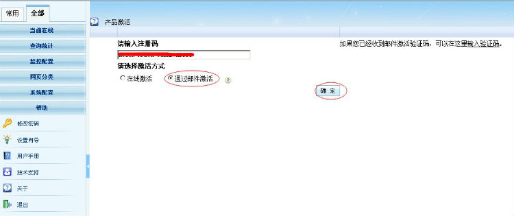 1)選擇“通過郵件激活”,輸入激活碼后點(diǎn)擊“確認(rèn)”按鈕。