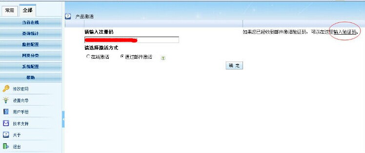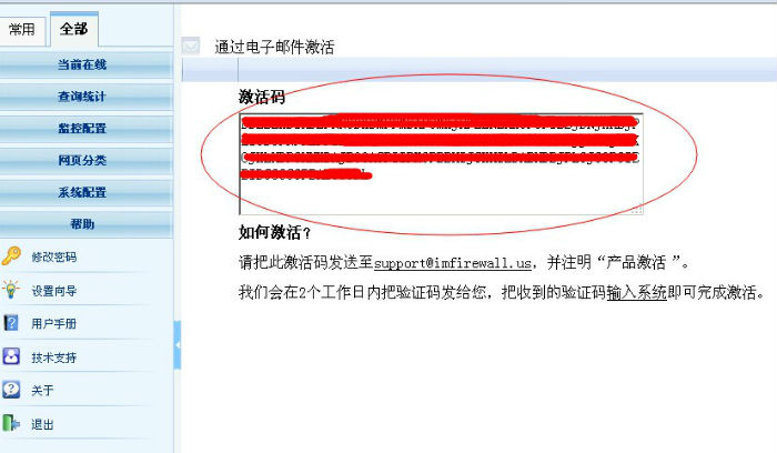 如果您選擇通過郵件的方式來激活您的產(chǎn)品,在對(duì)話框中輸入您購買時(shí)獲得的注冊碼,選擇郵件激活,點(diǎn)擊確定,頁面將返回一串激活碼,將激活碼的內(nèi)容通過郵件的方式發(fā)送到指定的郵箱中,公司將在兩個(gè)工作日內(nèi)將驗(yàn)證碼發(fā)給您,把收到的驗(yàn)證碼輸入到系統(tǒng),即可完成激活。