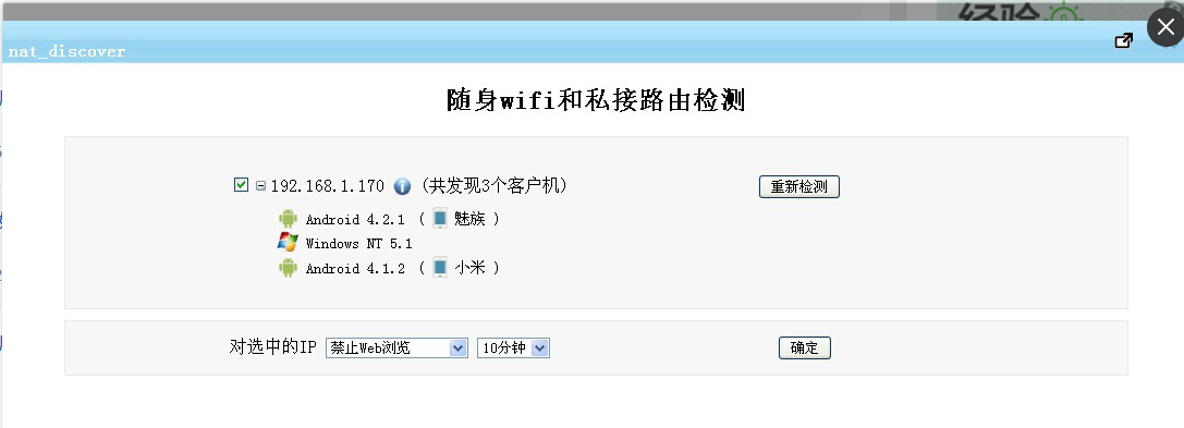2.不管是局域網(wǎng)內(nèi)的無(wú)線路由,還是私接路由或者隨身wifi插件管理里面,不但可以檢測(cè)哪些電腦接了隨身wifi,這些隨身wifi下有幾個(gè)設(shè)備,具體手機(jī)系統(tǒng),手機(jī)型號(hào)都可以查看到