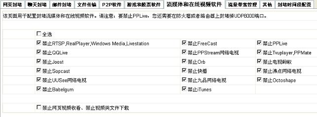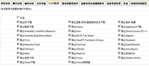 2. 禁止帶寬耗用比較多的協(xié)議,如:P2P、在線視頻、下載等。
