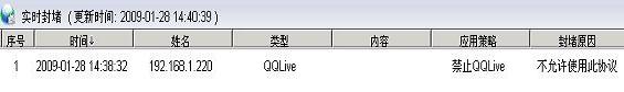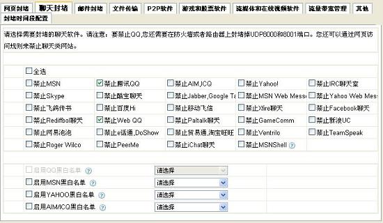 [B]行為管理:[/B]禁止QQ聊天對話,文件傳輸行為,禁止任何形式的QQ登陸通訊。