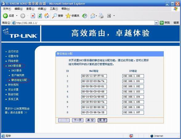 如果您確實需要通過自動分配IP上網(wǎng),同時又啟用了IP-MAC綁定,那么你需要配置您的DHCP服務(wù)器給每臺電腦分配固定的IP地址。以TP-LINK為例,打開DHCP服務(wù)器——靜態(tài)地址分配,在分配列表中填寫您為每一個MAC地址分配的IP,保存設(shè)置。這樣,DHCP服務(wù)器每次為同一MAC自動分配的IP地址將是固定的。