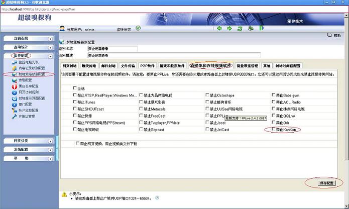 1.打開超級嗅探狗,在“監(jiān)控配置-- >封堵策略級別配置-- >新增級別-- >禁止迅雷看看”,配置如下圖所示: