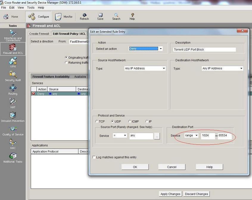 Block udp ports in cisco 2811 router