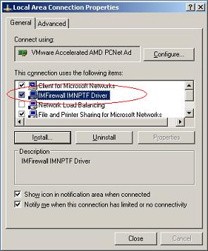 - Upon successful installation, you will be able to find "IMFirewall IMNPTF Driver" in "Properties" of local network connections.