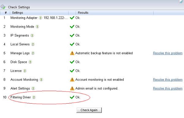 WFilter shall be restarted for the first time installation of the IMNPTF driver. Please click "stop" then "start" in "System Settings"->"Monitoring Settings" of WFilter.