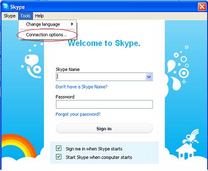 Below figures shows the steps to enable SOCK5 proxy of skype messenger: