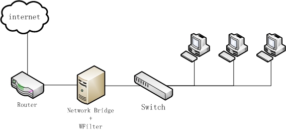 Therefore, by installing WFilter in a windows network bridge computer, you will be able to monitor and filter internet access of network computers.