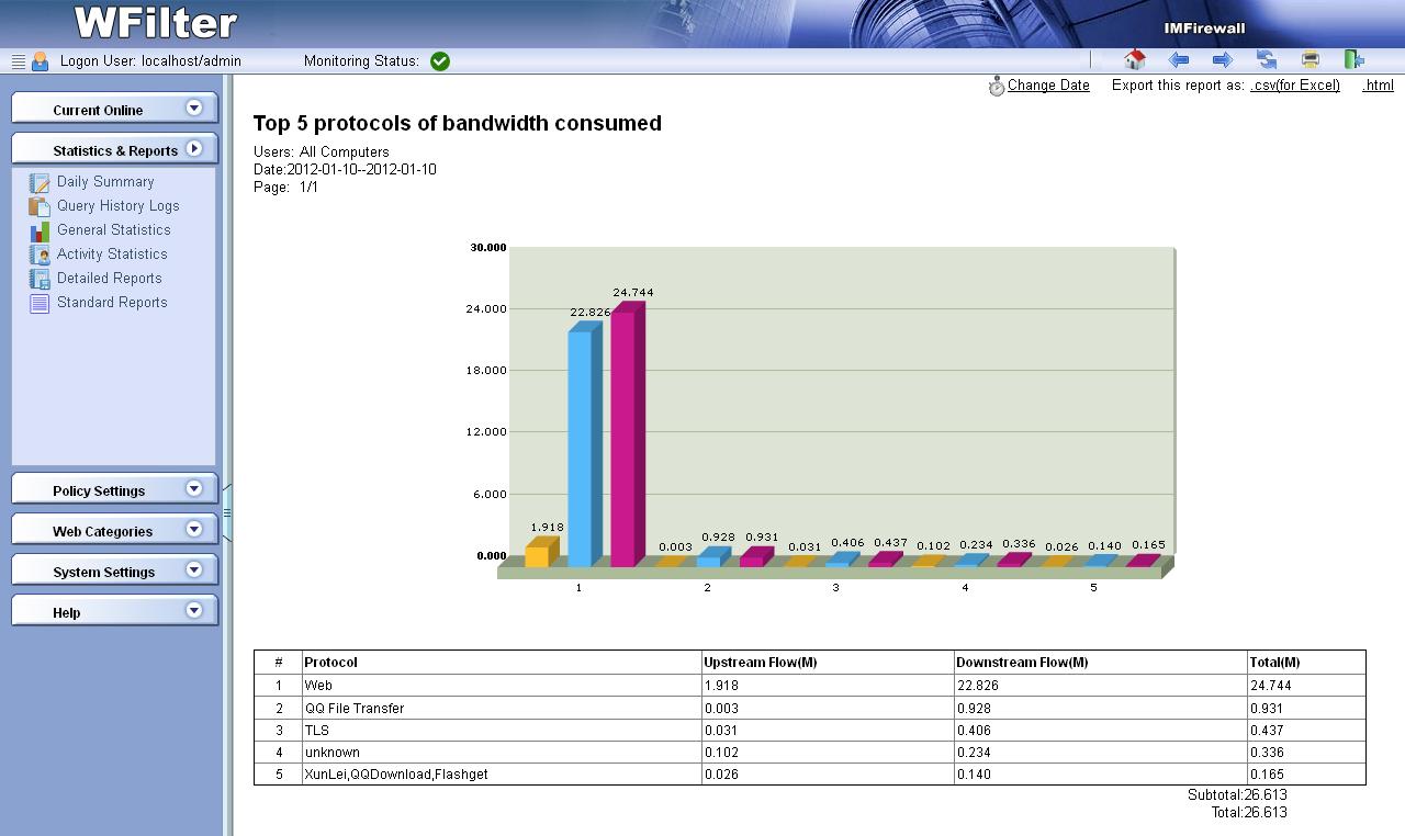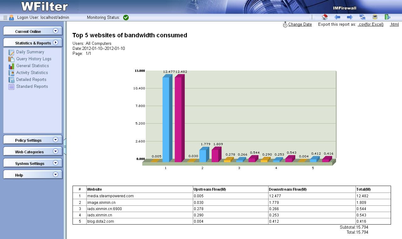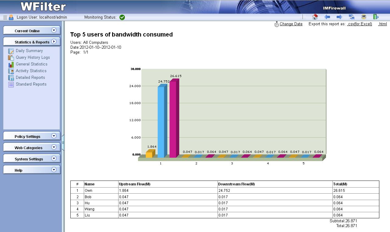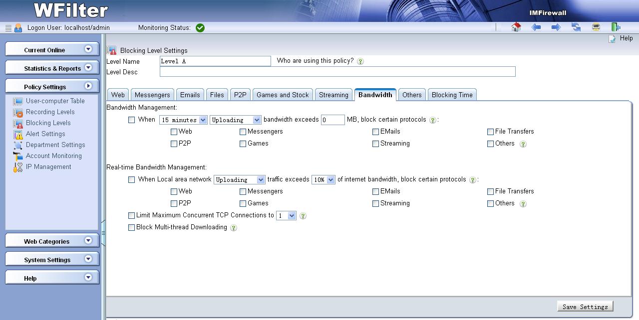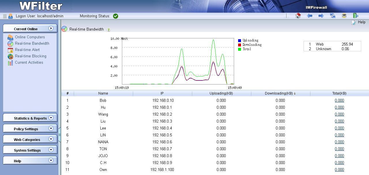 Home /  WFilter Screenshots - Bandwidth monitoring